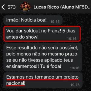 Depois que implementou o Método F5D disse ter saído de um projeto de bar para um espetáculo nacional com centenas de ingressos vendidos de forma antecipada.